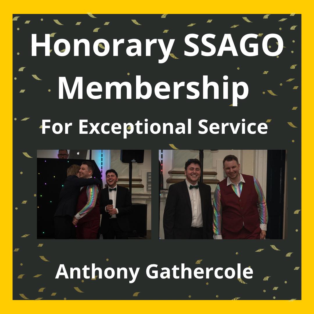 As he finally steps down from his position as SSAGO's first Events Officer, Ant's incredible commitment to SSAGO over many years was recognised through SSAGO's rarely bestowed Exceptional Service Award.